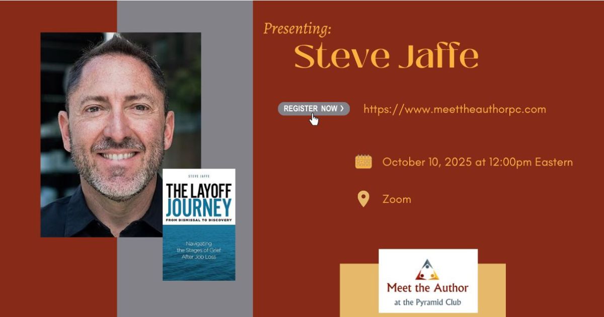 OnlineRegister for Zoom at https://www.meettheauthorpc.com Join for a lunchtime webinar with guest author, Steve Jaffe, where we'll discuss his book, "The Layoff Journey From Dismissal to Discovery: Navigating the Stages of Grief After Job Loss." A layoff isn’t just the loss of a paycheck; it’s the loss of stability, identity, and routine. It’s a deeply personal […]