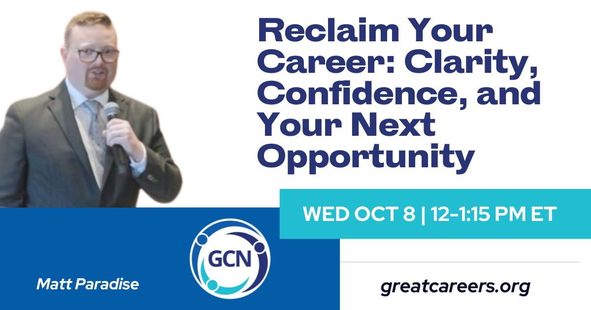 OnlineNon-member donations to https://givebutter.com/greatcareersphl Career changes? Returning? Starting over? Your experience counts. Join award-winning author and financial educator Matt Paradise for an energizing session filled with practical strategies to boost your confidence. Learn to present yourself well, highlighting what makes you special and why you're a great hire. You'll refocus, get practical tools, and map out […]