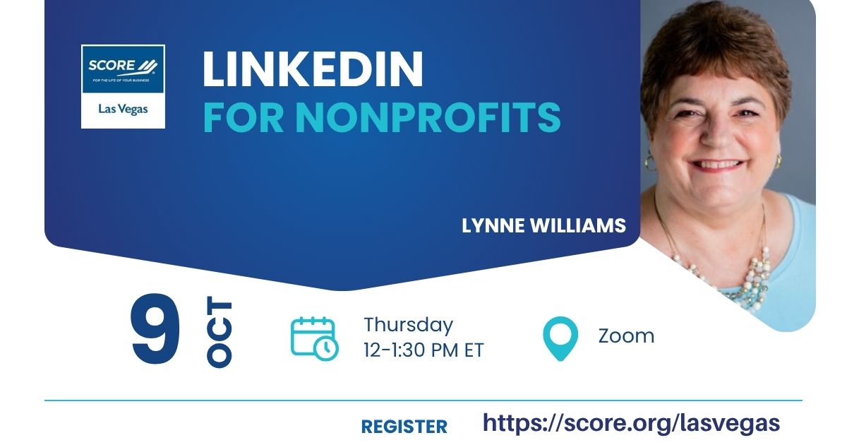 OnlineRegister for Zoom https://www.score.org/lasvegas/event/linkedin-nonprofits-0 How can you define your value proposition, optimize your LinkedIn profile, and leverage it for impact? What must you do to increase your nonprofit’s exposure, tell your story, and develop your networking strategies? Did you know: LinkedIn has over one billion users worldwide and welcomes three new members every second? LinkedIn […]