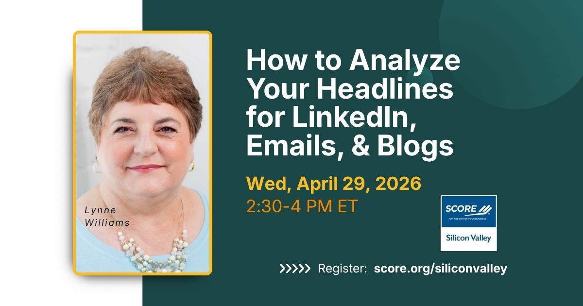Register at https://www.score.org/siliconvalley/event/how-analyze-your-headlines-linkedin-emails-blogs-42926 Do you want to learn about an analyzer to improve your overall LinkedIn headline score, engagement score, and impression score? Do you need tips to improve your email open rates based on the subject line? Do you want some tools to improve your blog titles to make them more appealing? Join us to […]